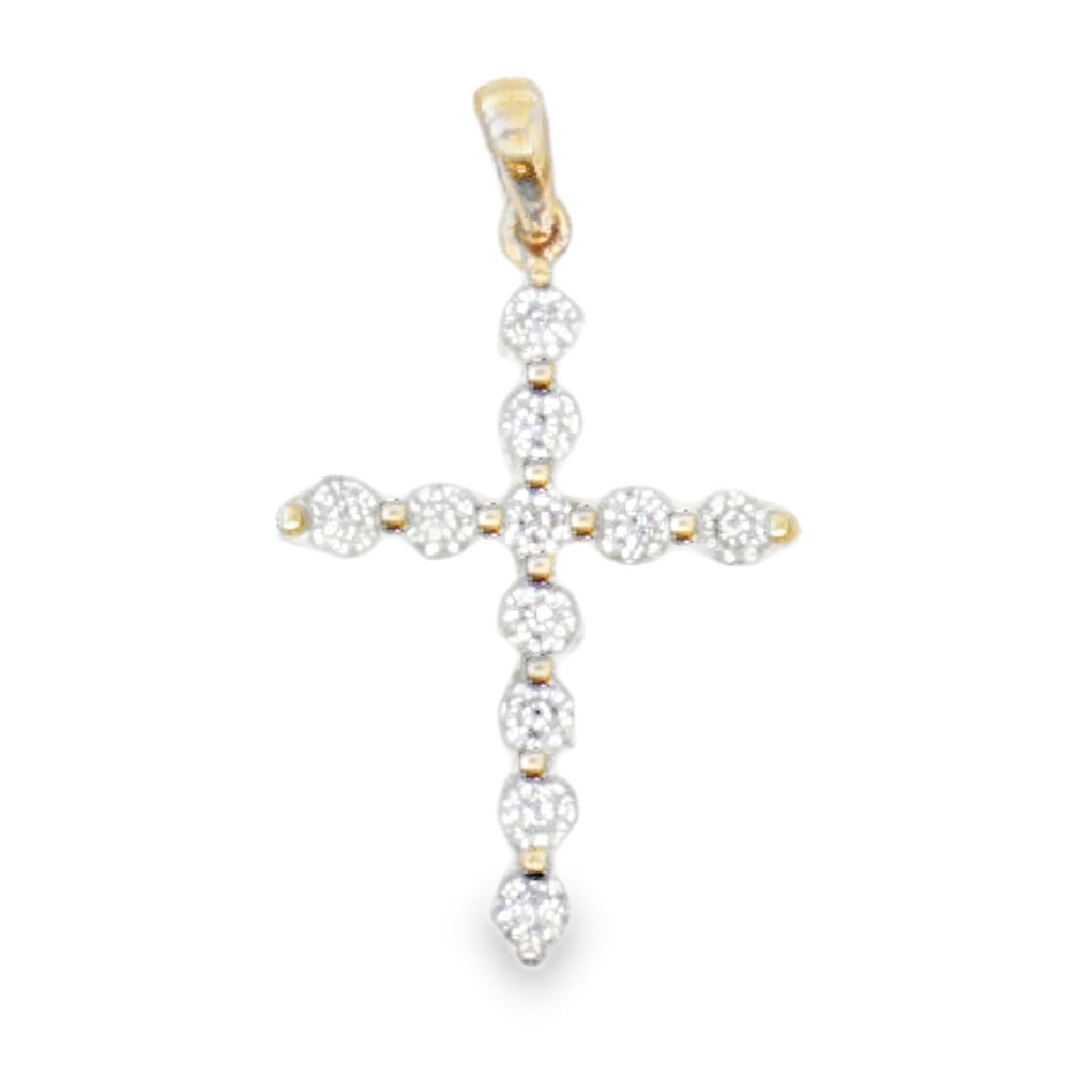 14K Yellow Gold Diamond Cross Pendant Set with 10 Round Diamonds (0.33ctw)