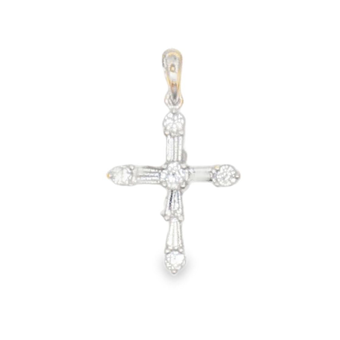 14K Yellow Gold Diamond Cross Pendant Set with 5 Round and 5 Baguette Diamonds (0.33ctw)