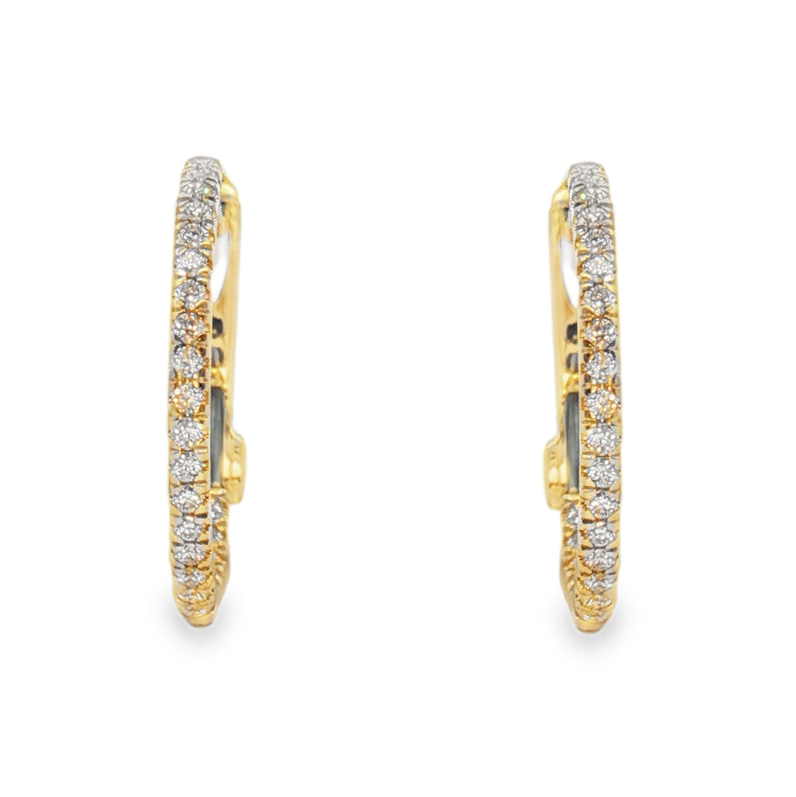 14K Yellow Gold Inside/Outside Thin 16mm Diamond Hoops with 50 Round Diamonds (0.20ctw)(GH/SI1)