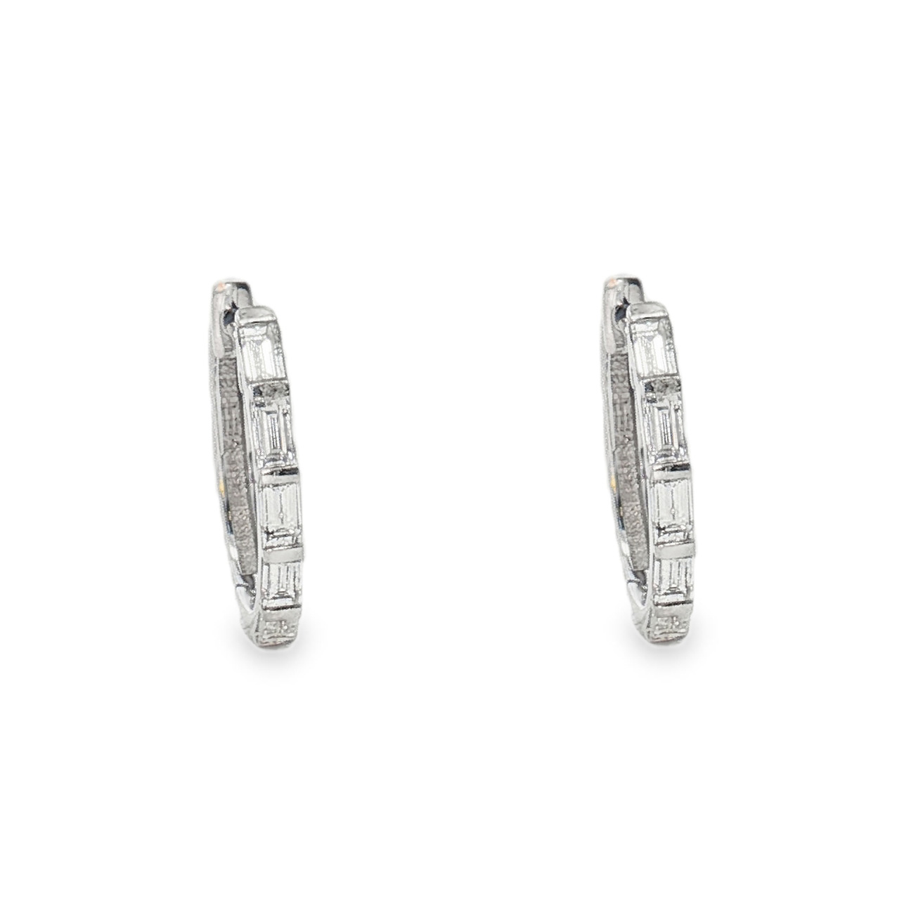 18K White Gold Baguette Diamond Huggie Earrings (0.41ctw)