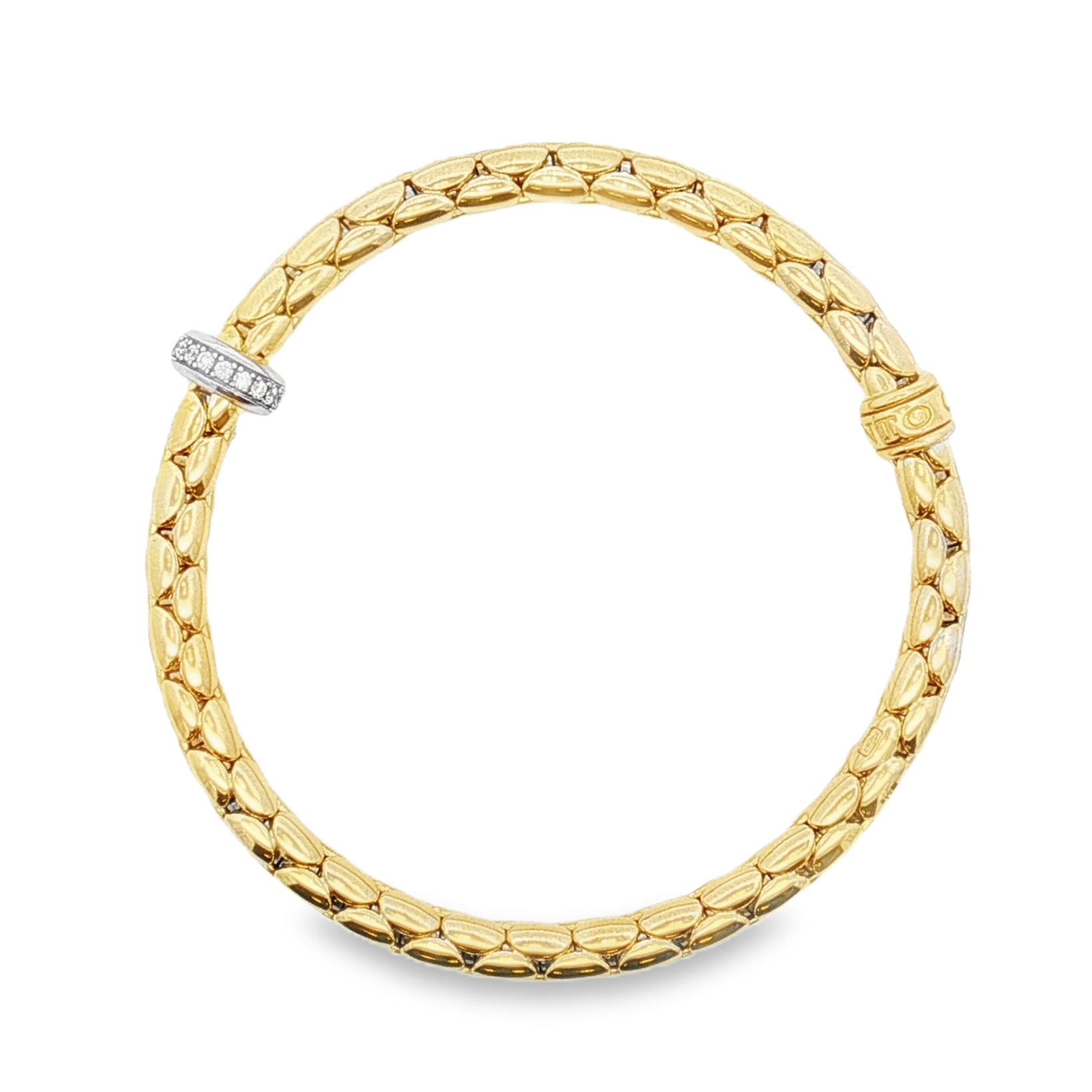 18K Yellow Gold “Stretch Spring” Bracelet with an 18K White Gold Rondelle Set with 15 Round Diamonds (0.1ctw)