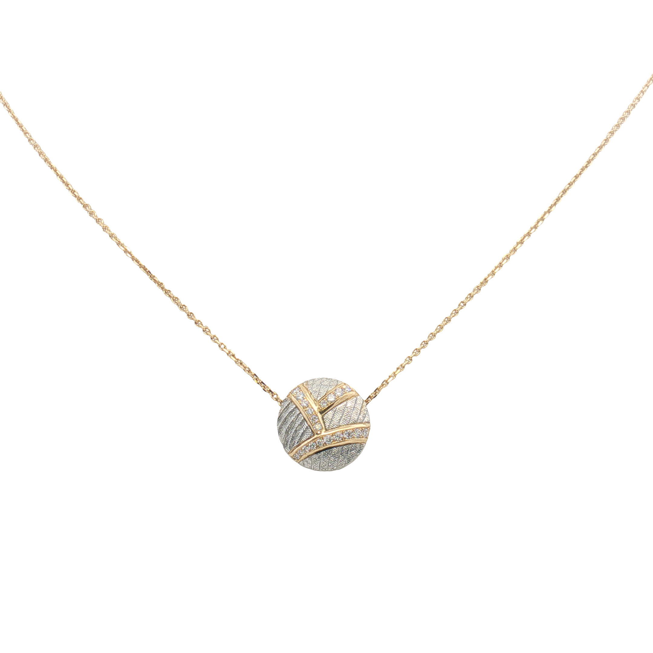 18K Yellow Gold and Platinum Diamond Disc Necklace Set with 18 Round Diamonds (0.21ctw) 18″ Chain Length