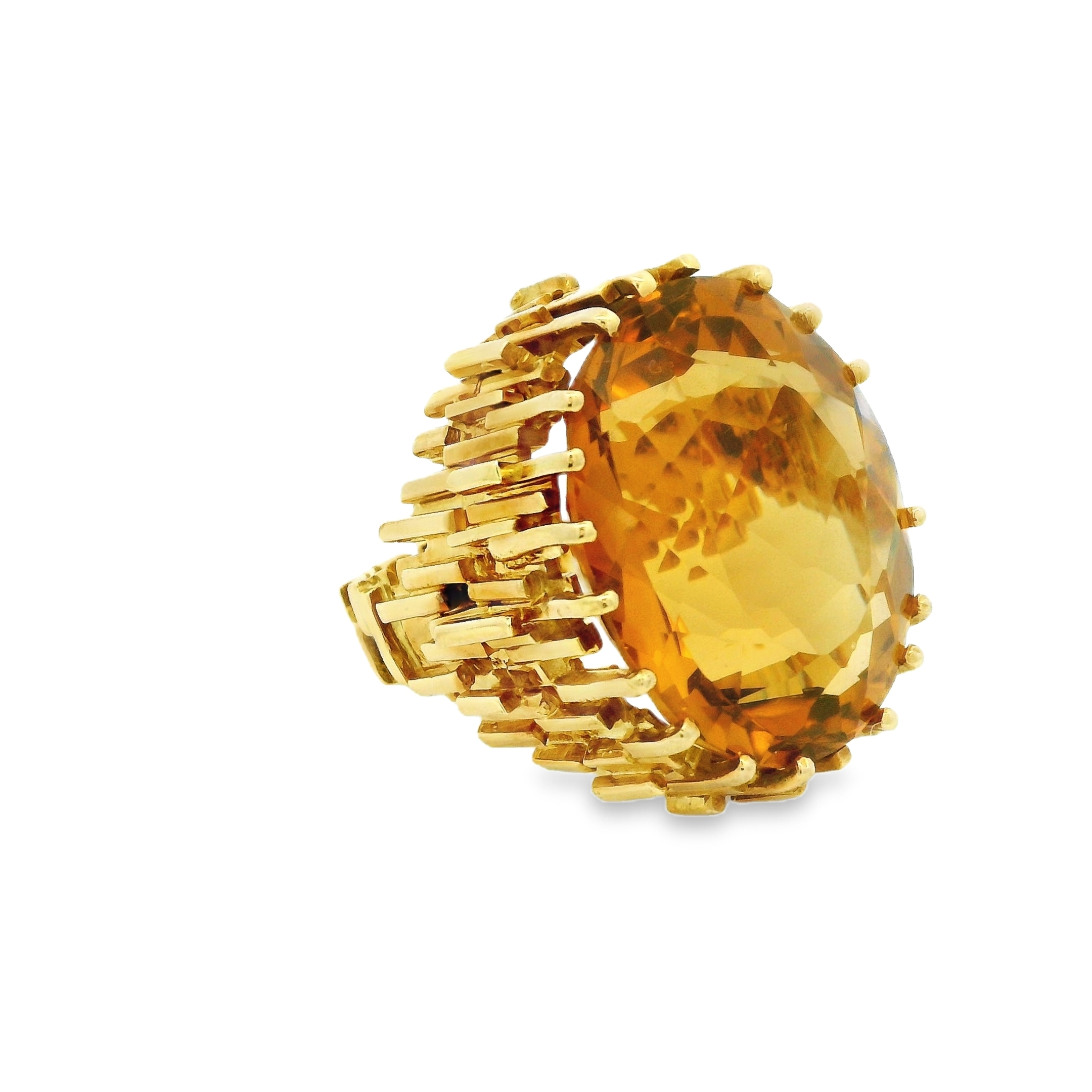 18K Yellow Gold Citrine Ring with One Oval Citrine (36.0 ctw) Size 6.5