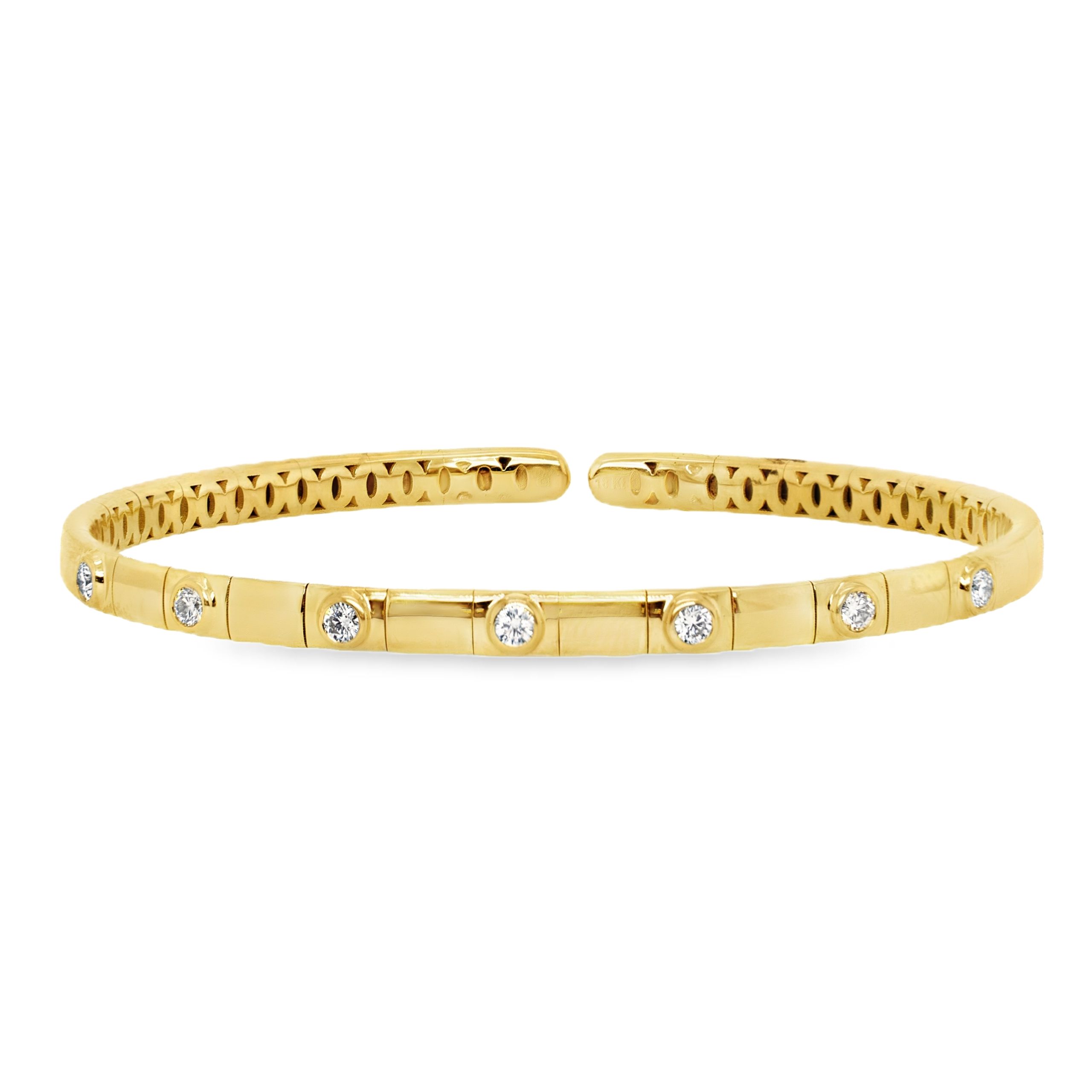 18K Yellow Gold SPairing Cuff Bracelet Bezel Set With 7 Round Diamonds
