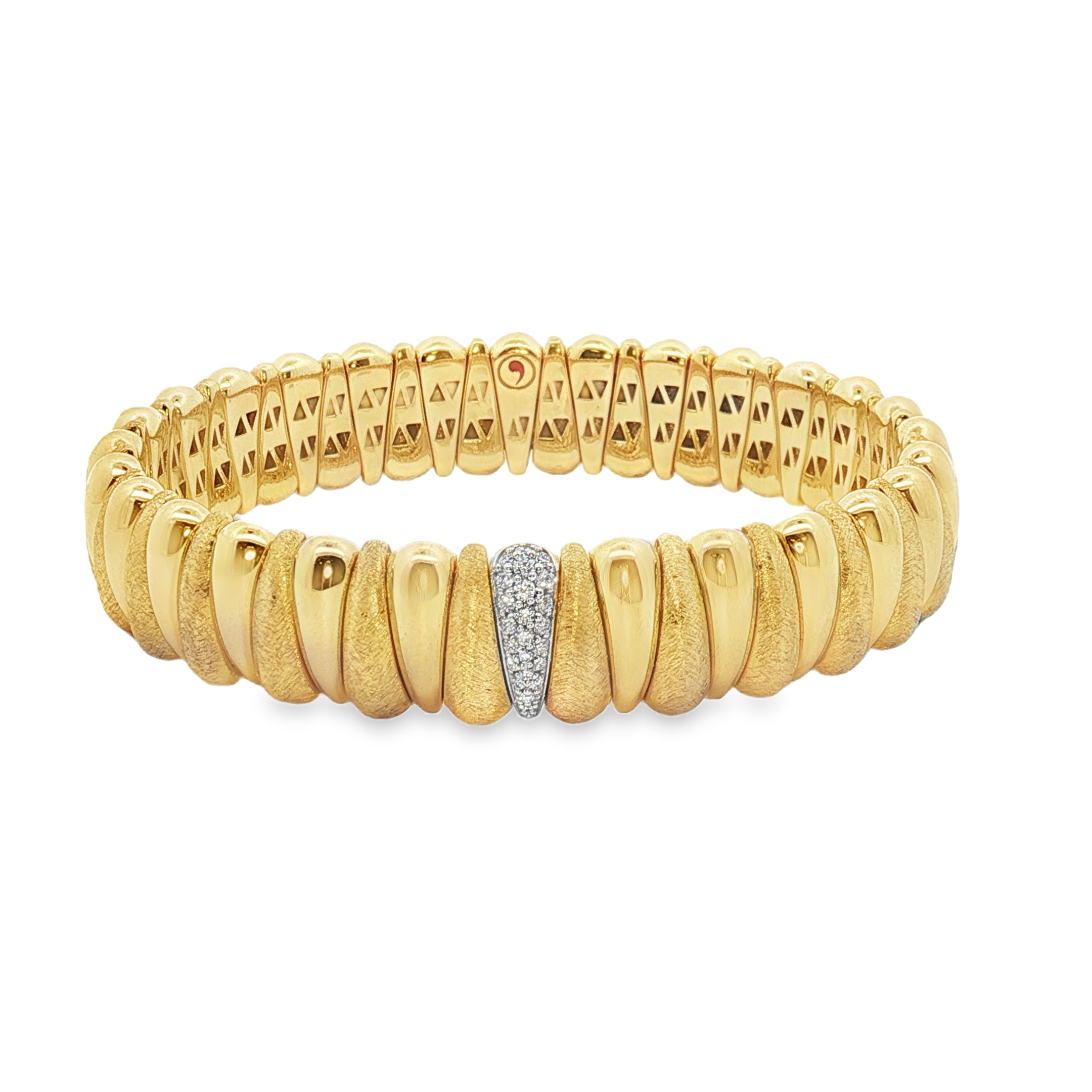 18K Yellow and White Gold Shiny and Matte Extra Small Diamond Bracelet Set with 23 Round Diamonds (0.18ctw)(FG/VS2-SI1) 6.5″ Length