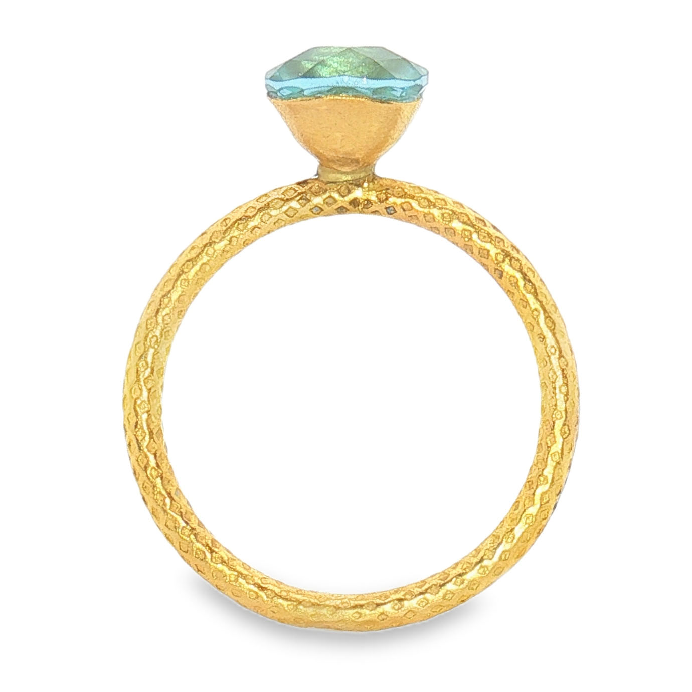 24K Yellow Gold Cushion Blue Green Stone Ring