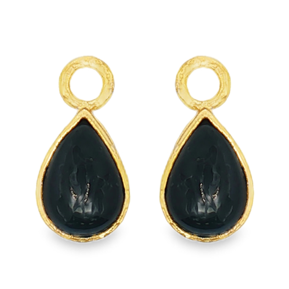 Pair of 19K Yellow Gold Black Venetian Glass Intaglio Pear-shaped Earrings
