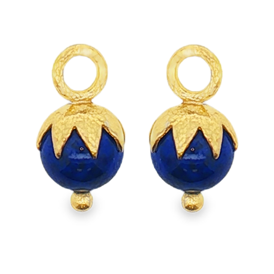Pair of 19K Yellow Gold Lapiz Lazuli Ear Charms with Yellow Gold Eggplant Cap