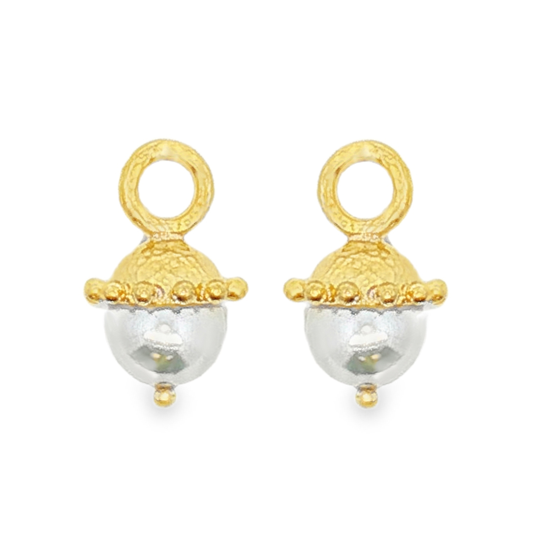 19K Yellow Gold Pearl Ear Charms with Two 11mm Pearls to Be Worn on Hoops, or ‘Sarabella’ Earrings