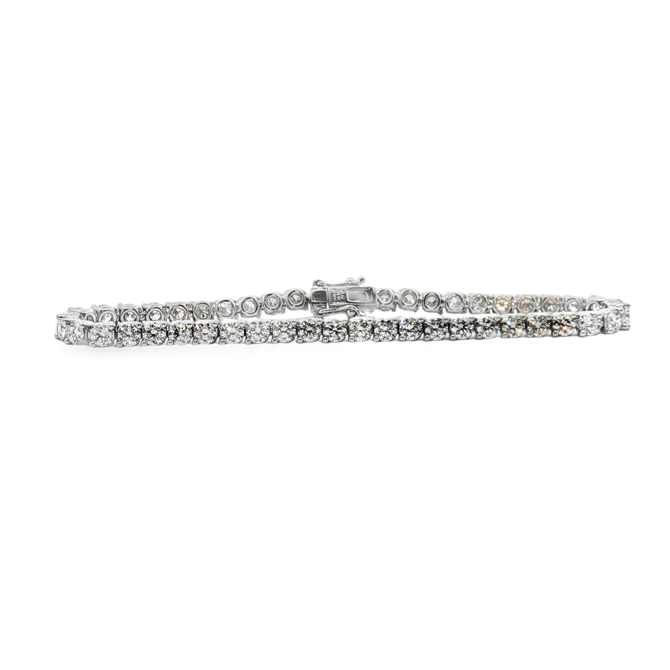 Platinum Diamond Tennis Bracelet Set with 48 Round Diamonds (6.46ctw)(H/VS2) in Two Prong Settings Buttercup Stile Wire Tennis Bracelet 7″ Length