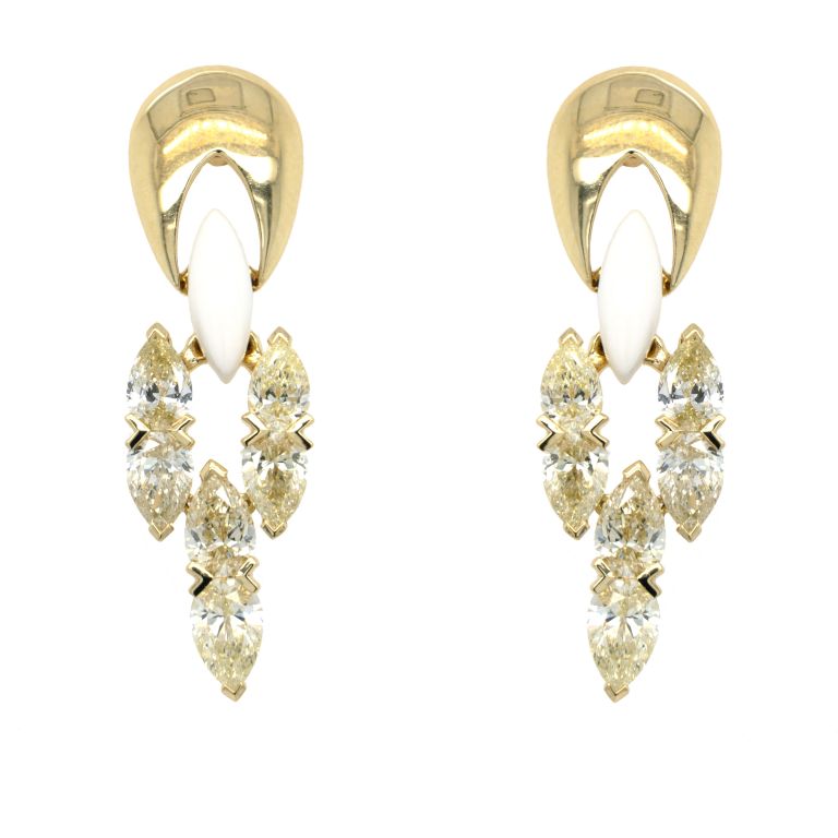 19K yellow gold venetian glass bracelet set with 5 venetian glass intaglios backed by mother of pearl from ELIZABETH LOCKE.