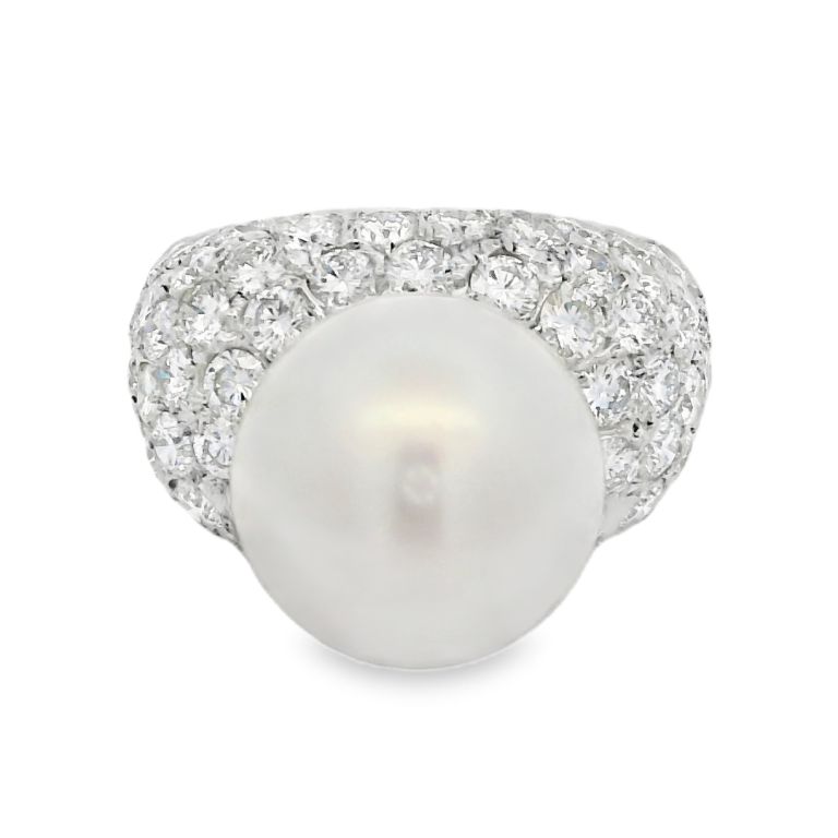 18K Yellow and White Gold Cultured Freshwater Pearl Diamond Enamel Ring