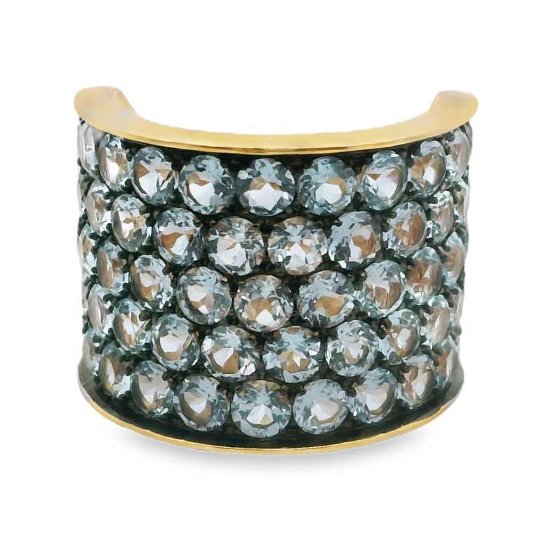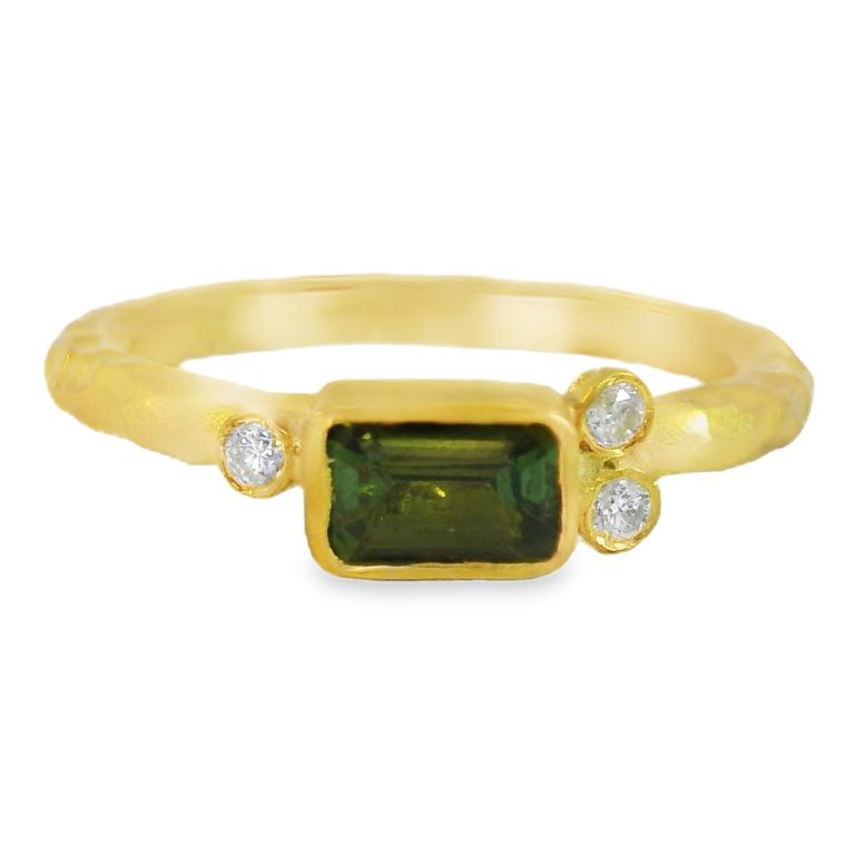 19K yellow gold diamond and cushion shaped turquoise ring from ELIZABETH LOCKE.